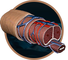 ევროპული რასის წარმომადგენლის პენისის სტრუქტურა. კავერნოზული სხეულების რაოდენობა: 2,5 მილიონი.